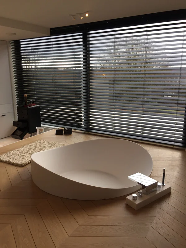 Ga voor moderne elegantie met onze aluminium jaloezieën. Deze stijlvolle en duurzame jaloezieën zijn perfect voor een eigentijds interieur. Het aluminium materiaal biedt talloze voordelen, zoals vochtbestendigheid en warmtewering, waardoor ze ideaal zijn voor badkamers en andere vochtige ruimtes. Bovendien kun je met aluminium jaloezieën spelen met kleuren en tinten om een unieke stijlstatement te creëren. Onze aluminium jaloezieën zijn van hoge kwaliteit en gaan lang mee. Met een ruime keuze in materiaal, kleur en breedte, kun je de perfecte aluminium jaloezieën vinden die passen bij jouw smaak en interieur. Kies voor moderne veelzijdigheid en functionaliteit met onze prachtige aluminium jaloezieën.